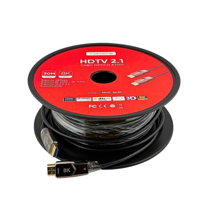 CABO HDMI 2.1 8K ULTRA HD CABO OPTICO ATIVO 30 METROS TOMATE