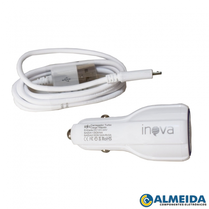 CARREGADOR VEICULAR TURBO USB DUPLO MICRO USB CAR-G5079 INOVA