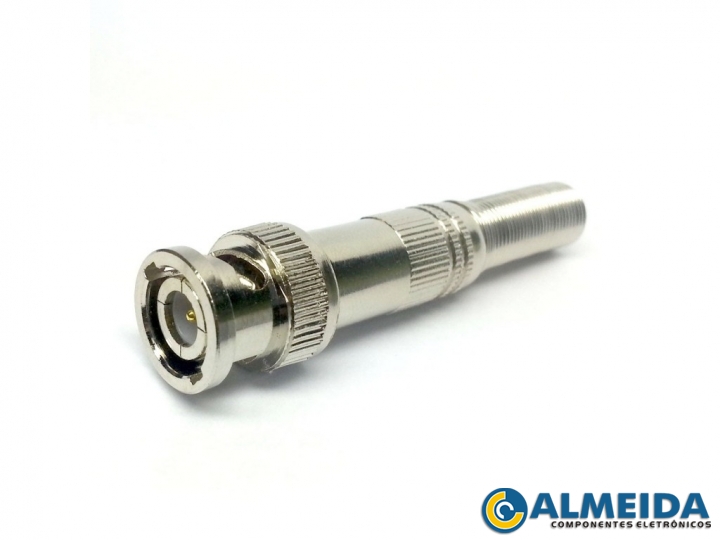 CONECTOR BNC MACHO PINO FIXO PARA RG59 COM MOLA E PARAFUSO