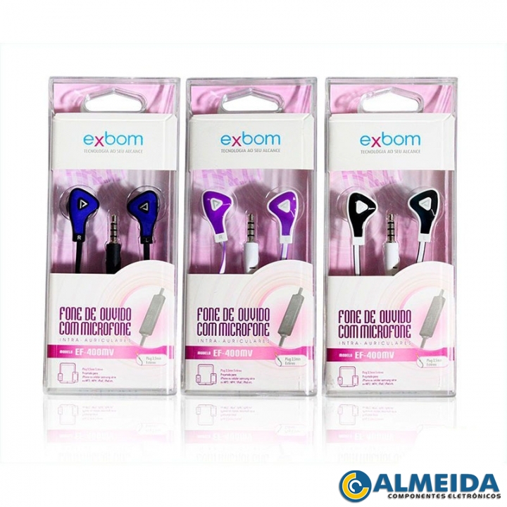 FONE DE OUVIDO COM MICROFONE SMARTPHONE/MP3 EF-400MV EXBOM