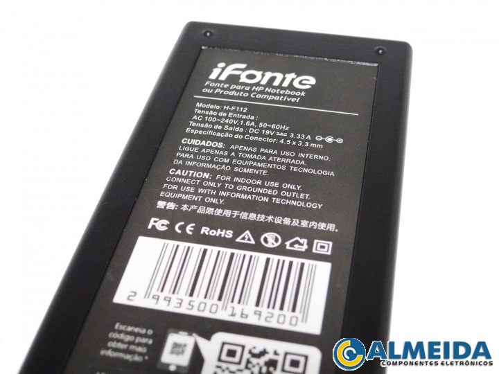 Fonte para HP/65W/19.5V/3.33A/4.5×3.0mm