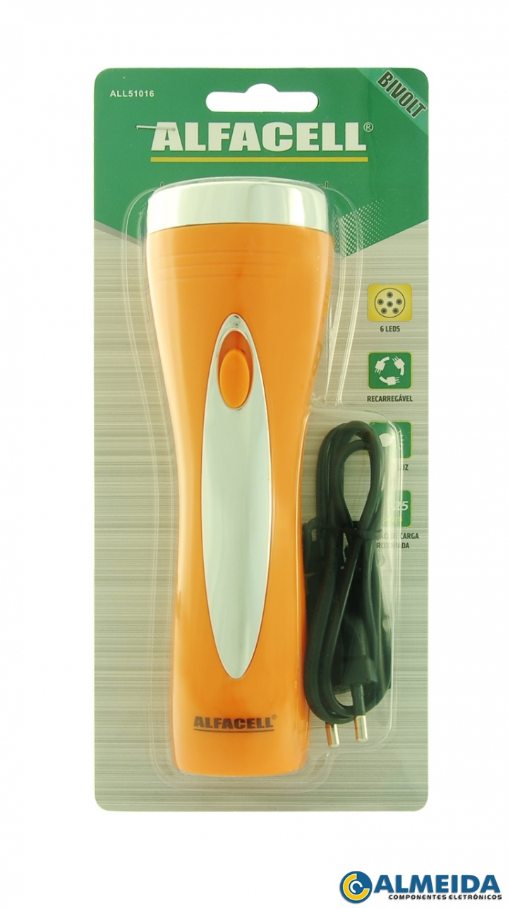 LANTERNA RECARREGAVEL 6 LEDS LARANJA (ALFACELL)