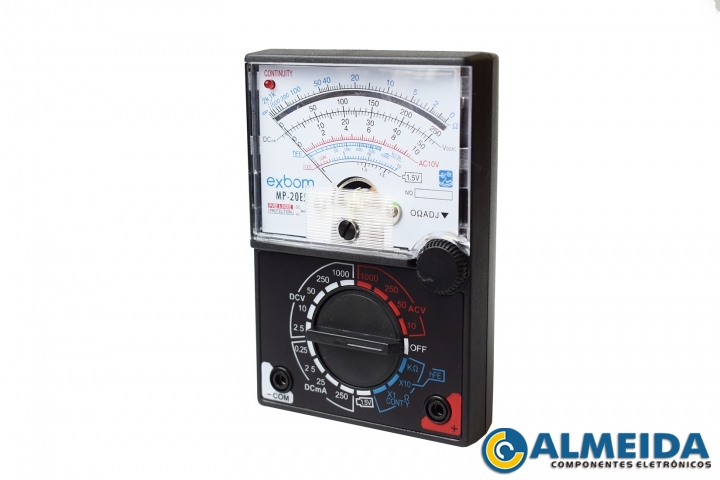 O multпїЅmetro analпїЅgico пїЅ uma excelente opпїЅпїЅo para quem precisa realizar suas mediпїЅпїЅes de maneira rпїЅpida e eficiente! Possui sensibilidade de 20ko/V e mostrador analпїЅgico.