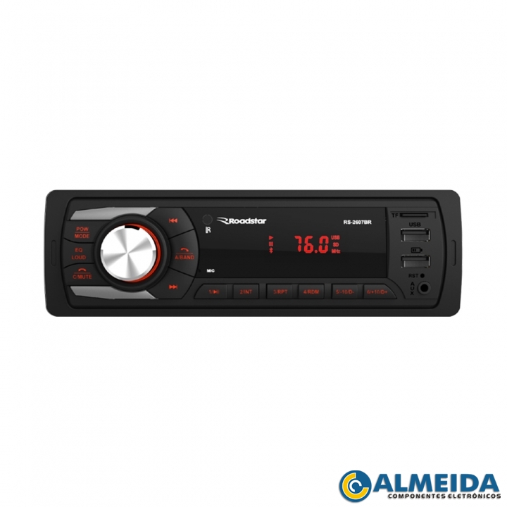 RADIO AUTOMOTIVO FM/USB/BLUETOOTH C/ CONTROLE RS2607BR ROADSTAR