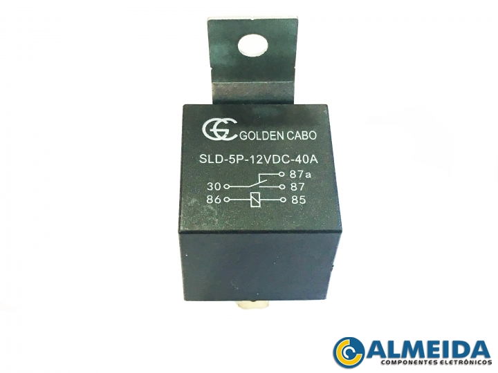 RELE AUXILIAR 12V 40A 5 PINOS C/SUPORTE AUTOMOTIVO GOLDEN CABO